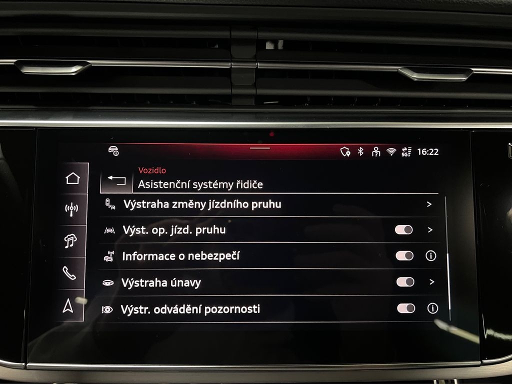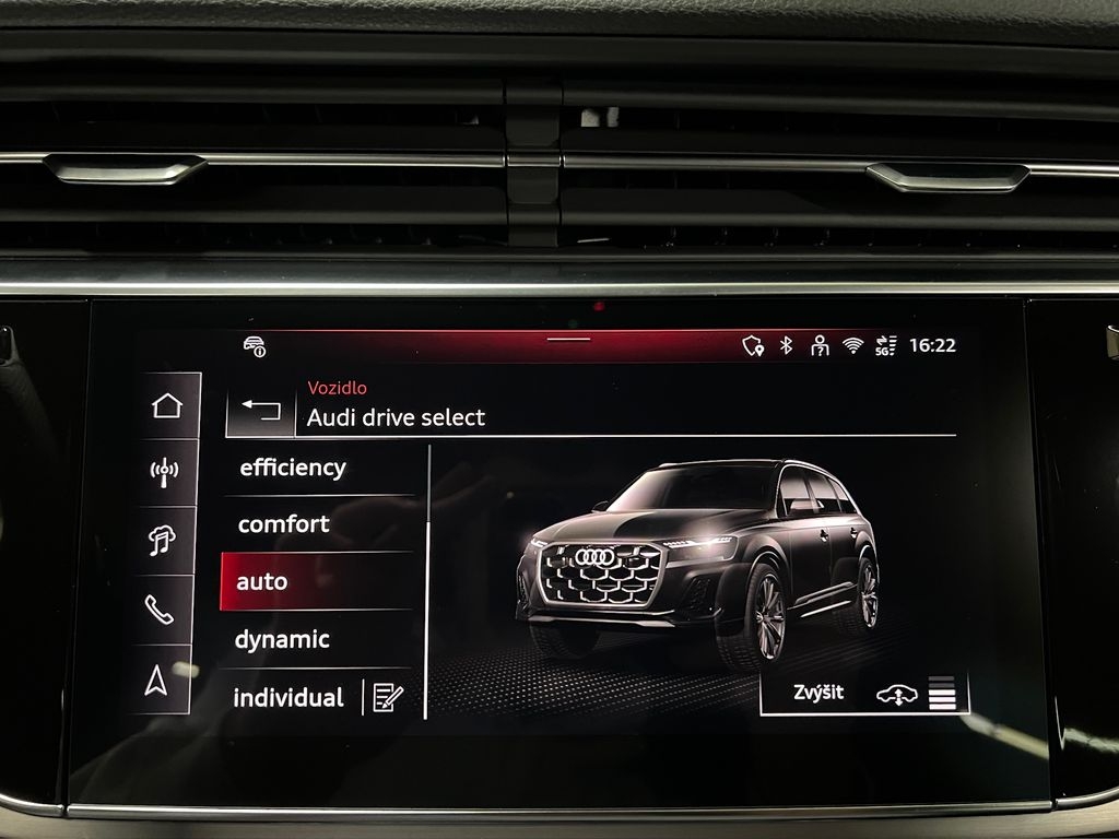 ADAPTIVNÍ MATRIX SVĚTLOMETY S LED DENNÍM SVÍCENÍM, 8MI STUPŇOVÁ AUTOMATICKÁ PŘEVODOVKA S MOŽNOSTÍ ŘAZENÍ POD VOLANTEM, PAKET TOUR, PAKET GRAVITY, PAKET ČERNÉ OPTIKY, SLINE PAKET EXTERIÉR A INTERIÉR, AUDI VIRTUAL COCKPIT PLUS, ADAPTIVNÍ VZDUCHOVÝ PODVOZEK, KEYLESS, SATELITNÍ NAVIGAČNÍ SYSTÉM, 3D SOUNDSYSTÉM BANG&OLUFSEN, 4 ZÓNOVÁ AUTOMATICKÁ KLIMATIZACE, APPLE CARPLAY/ANDROID AUTO, BEZDRÁTOVÉ DOBÍJENÍ MOBILNÍHO TELEFONU, AMBIENTNÍ OSVLĚTNEÍ INITERIÉRU, AUTOMATICKÉ DOVÍRÁNÍ DVEŘÍ SOFTCLOSE, VYHŘÍVANÝ VOLANT, PŘEDNÍ SEDADLA EL. OVLÁDANÁ VYHŘIVANÁ, SEDADLO ŘIDIČE S PAMĚTÍ, ZPĚTNÁ ZRCÁTKA EL. OVLÁDANÁ SKLOPNÁ ZATMAVOVACÍ A VYHŘÍVANÁ, PŘEDNÍ A ZADNÍ PARKOVACÍ SENZORY, 360 KAMERA, PARKOVACÍ ASISTENT, ADAPTIVNÍ TEMPOMAT, HLÍDÁNÍ VOZIDLA V PRUZÍCH,, ZATMAVENÁ ZADNÍ SKLA, EL. OVLÁDANÉ VÍKO ZAVAZADLOVÉHO PROSTORU, ORIG. EL. OVLÁDANÉ TAŽNÉ ZAŘÍZENÍ, ALU. KOLA AUDI SPORT 22"